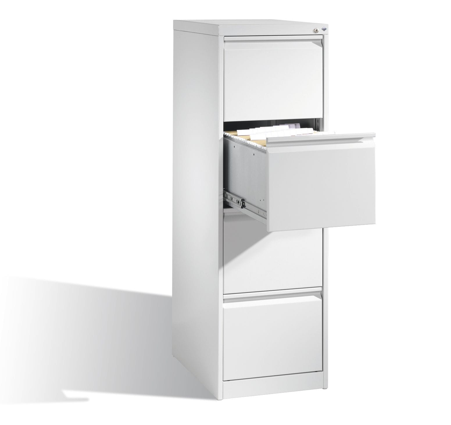4 szuflady z pełnym wysuwem, na teczki zawieszkowe A4.